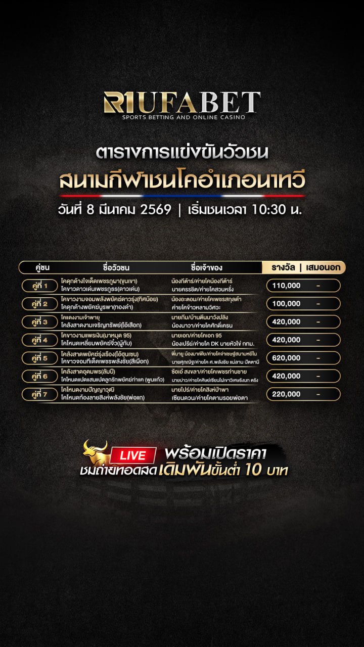 ผู้ที่สนใจสามารถติดตามการแข่งขันวัวชนผ่านระบบออนไลน์ได้อย่างสะดวก และรับชมบรรยากาศการแข่งขันจากสนามจริงได้ทันทีผ่านหน้าเว็บไซต์