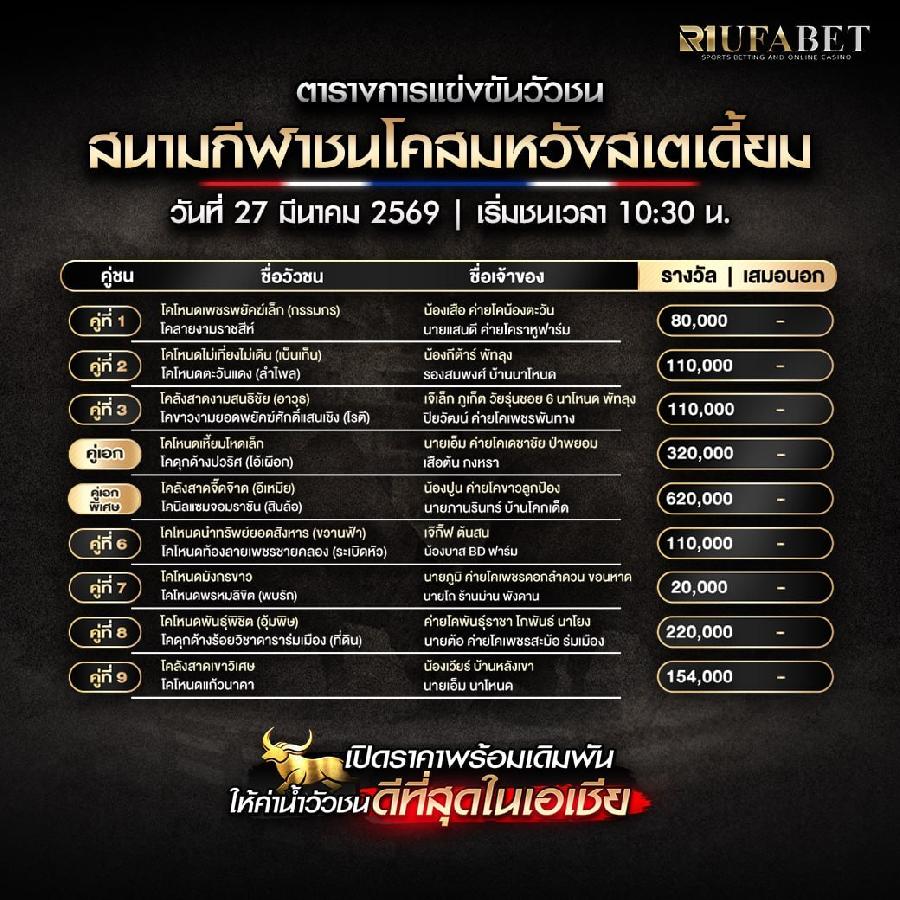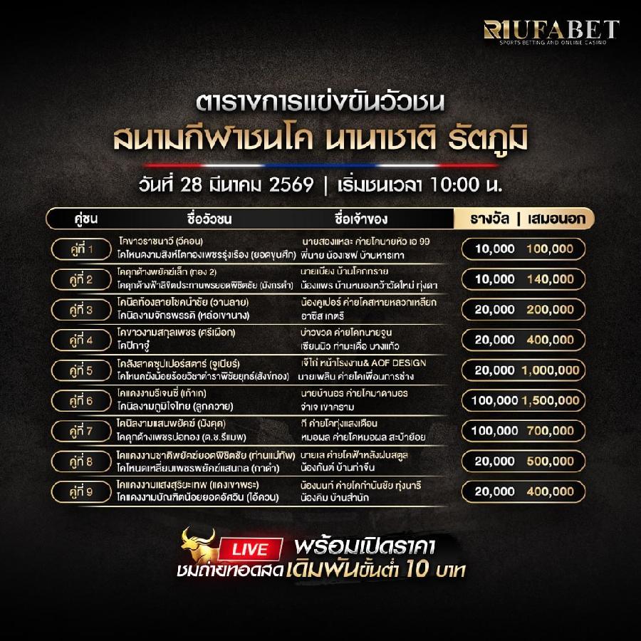 ผู้ที่สนใจสามารถติดตามการแข่งขันวัวชนผ่านระบบออนไลน์ได้อย่างสะดวก และรับชมบรรยากาศการแข่งขันจากสนามจริงได้ทันทีผ่านหน้าเว็บไซต์