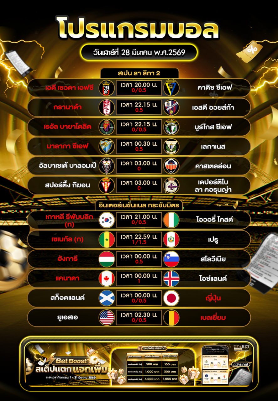 หัวข้อ : รับชมฟุตบอลวันนี้ผ่านมือถือ 24 ชั่วโมงโปรแกรมการแข่งขันฟุตบอลจากลีกดังทั่วโลก @BY789