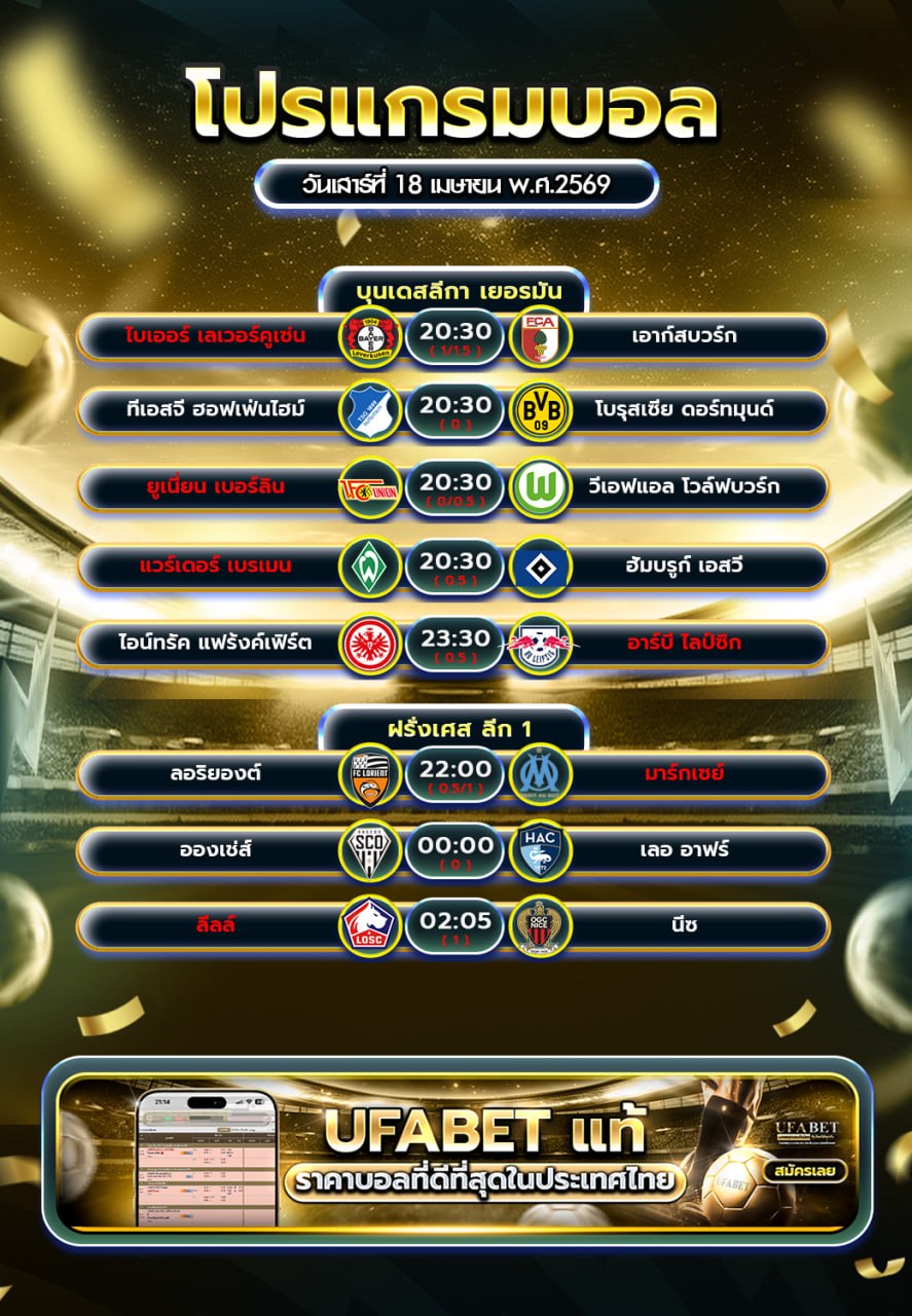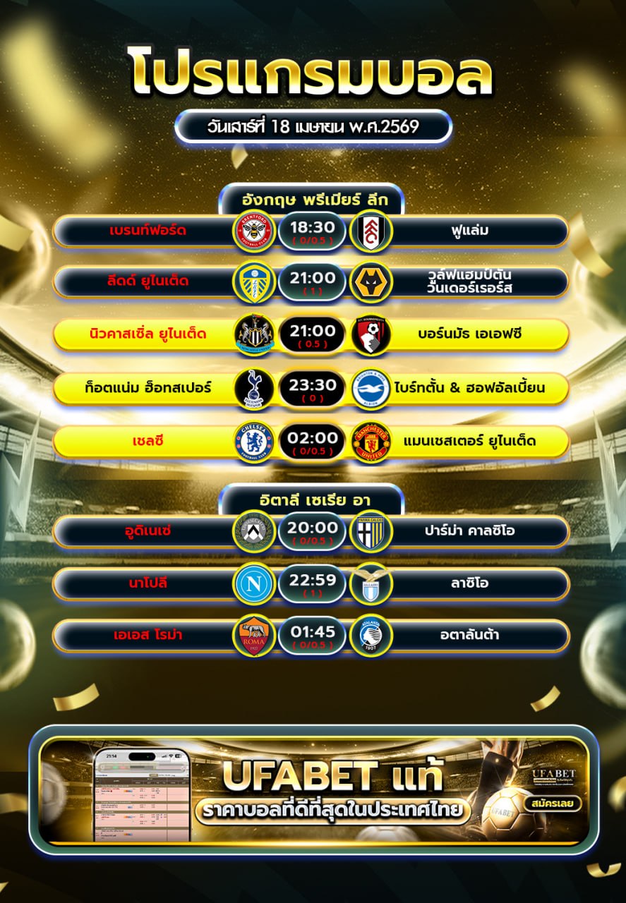 รับชมฟุตบอลวันนี้ผ่านมือถือ 24 ชั่วโมงโปรแกรมการแข่งขันฟุตบอลจากลีกดังทั่วโลก @BY789
